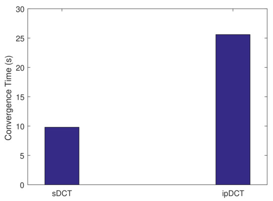 We first evaluate the sDCT, L2RMR, and ipDCT during the bootstrapping (network setup). We measure the convergence time of the network setup. The obtained results are presented in Figure 8. Figure 8 shows that the collection tree setup in the sDCT is significantly faster than in ipDCT and L2RMR. This is due to the fact that ipDCT and L2RMR use a high number of control messages, such as DIO, DAO, and DIS (DODAG Informational Solicitation) messages, during the network setup and maintenance. The rank building in the sDCT is also simpler than in ipDCT and L2RMR. L2RMR requires more message exchanges for the bootstrapping, so its convergence time is longer than that of ipDCT.