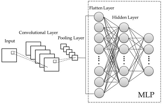 The main difference between CNN and traditional MLP lies in the addition of the convolutional layer and the pooling layer as shown in Figure 1. The emergence of CNN has made rapid progress in machine learning in the visual part. It mainly uses the concept of mask in a machine-vision study where convolution operations are performed in the convolutional layer, and the amount of calculation can be reduced through the introduction of the pooling layer. Finally, a large number of complex neuron connections in MLP are used to assist the machine in classification and learning [22,23]. The calculation method is described below.