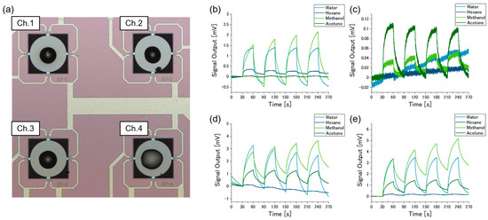 - Yoo, Y.K.; Chae, M.-S.; Kang, J.Y.; Kim, T.S.; Hwang, K.S.; Lee, J.H. Multifunctionalized Cantilever Systems for Electronic Nose Applications. Anal. Chem. 2012, 84, 8240–8245. [Google Scholar] [CrossRef]