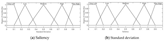 Remark 1. The triangular and trapezoidal membership functions perform better than do other membership functions, as shown by tests performed using various membership functions to investigate the resulting stability of the fuzzy system [54]. These membership functions are effective and frequently used for two reasons. First, they are computationally highly efficient since their membership calculations are linear. Therefore, they can be used to process large volumes of data, such as images. Second, the triangular and trapezoidal functions are easily visually understood and offer an environment that is reasonably conducive to human-in-the-loop knowledge acquisition [51]. Consequently, we adopt triangular and trapezoidal membership functions in this study. Remark 2. The proposed reconstruction method is improved relative to the work presented in [38] and extended to a more flexible solution by reducing the computational complexity and improving the reconstructed image quality. The performance and reliability of our algorithm are enhanced through the use of an FLS to adaptively determine the convergence speed of the BCS-SPL reconstruction algorithm based on the image characteristics and the sampling rate. The convergence speed determines the number of iterations of the BCS-SPL algorithm required to reconstruct the image. A large number of iterations increases the computational complexity without guaranteeing a better reconstructed image quality, while a small number of iterations reduces the complexity but can result in an unsatisfactory image reconstruction. The conventional BCS-SPL algorithm uses a fixed convergence speed for all blocks in the image. Utilizing an FLS based on the image features and sampling rate to determine a suitable convergence speed for each block individually helps address these problems. A small number of iterations can be used for less important blocks, while a larger number of iterations can be used for more important blocks. The complexity of our reconstruction algorithm is discussed in the next section. 4. Experimental Results and Discussion