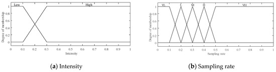 The second input variable in this FLS is the sampling rate is, which has 9 linguistic values (Low Low, Low, Low High, Medium Low, Medium, Medium High, High Low, High, and High High), as shown in