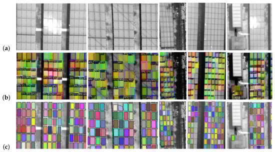 The detectron2 model is trained with the procedures reported for a new data set [], the model is mask_rcnn_R_50_FPN_3x. The Mask R-CNN network is trained using 2000 cycles and a custom data loader. The custom data loader is used for data augmentation, with random changes of: 1 percent rotation, horizontal flip, contrast between 0.5 and 1.5, brightness between 0.6 and 1.5, lighting of 2, saturation between 0.5 and 1.5 and a crop function. Through previous evaluations it was determined that the prediction with the score threshold of 0.2 does not affect the false positives and allows not to exclude panels of difficult detection. Finally, the results are drawn on an image and each prediction is exported to a mask in a NumPy file [].