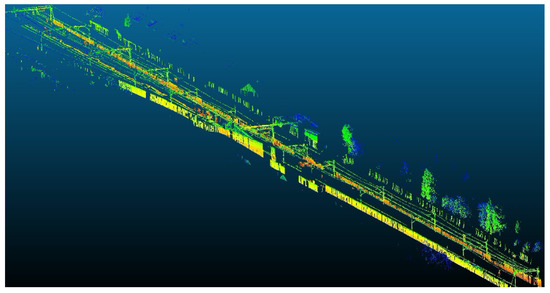 Other studies have performed automated tasks on point clouds acquired by an MLS from a railway environment. Che et al. [7] have presented a systematic review focused on identifying studies in which object recognition methods based on data recorded by LiDAR sensors in different scenarios are developed. In a railway environment, most of the studies are focused on identifying the track bed and the rails from the point cloud [8,9,10,11,12].