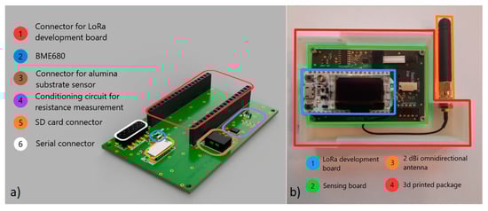 (a) Sensing board built for LoRa (short for long-range) nodes development and (b) end node without the front cover.