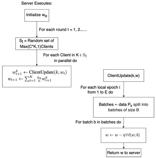 - McMahan, B.; Moore, E.; Ramage, D.; Hampson, S.; Arcas, B.A.Y. Communication-Efficient Learning of Deep Networks from Decentralized Data. In Proceedings of the 20th International Conference on Artificial Intelligence and Statistics, Fort Lauderdale, FL, USA, 20–22 April 2017; Singh, A., Zhu, J., Eds.; Volume 54, pp. 1273–1282. [Google Scholar]