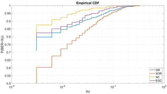 4.2. BER Cumulative Distribution Function (CDF)