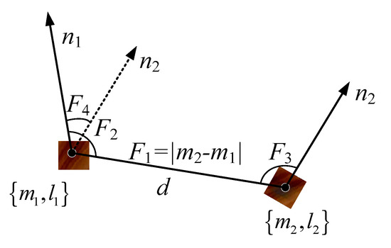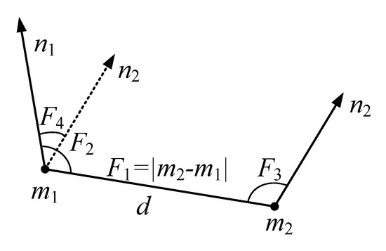For any two points and and their respective normal vectors , define the constraint relationship describing the local texture feature point pair as shown in Equation (4) [7]: