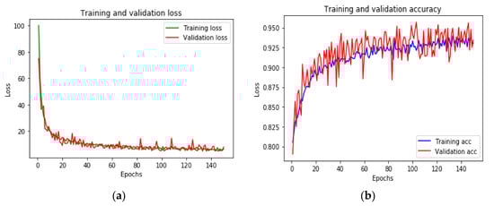 The loss function declining curve with different epochs on the training and validation dataset is plotted in Figure 11a,b. It clearly shows that the curve becomes stable after 60 epochs, but we continued the observation to the 140th epoch.