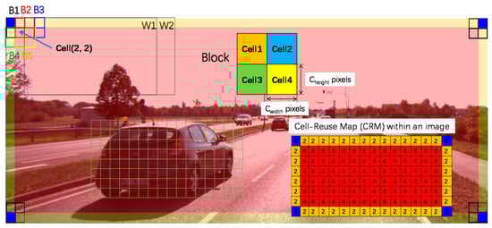 Firstly, differing from our previous work [], a scalable size of a block is implemented in this work, which enables the flexibility to detect objects in different shapes and scales. For instance, a vertical rectangle detection window (DW) is often used in pedestrian detection but a horizontal rectangle DW is suitable for vehicle detection.