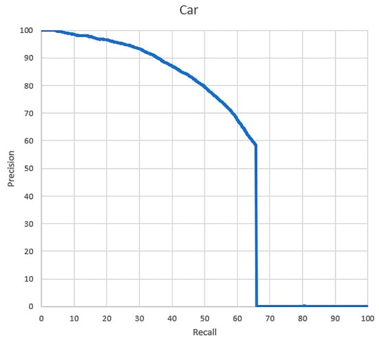 The precision-recall curve of our vehicle detection classifier. For a required recall, if our result can reach the recall, the corresponding precision can be calculated according to the measurement criteria in [].