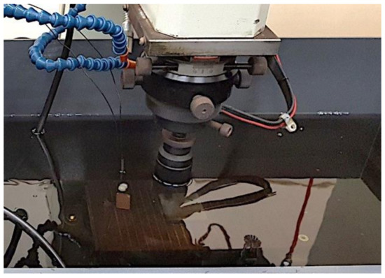 - Niamat, M.; Sarfraz, S.; Aziz, H.; Jahanzaib, M.; Shehab, E.; Wasim, A.; Hussain, S. Effect of Different Dielectrics on Material Removal Rate, Electrode Wear Rate and Microstructures in EDM. Proced. CIRP 2017, 60, 2–7. [Google Scholar] [CrossRef]