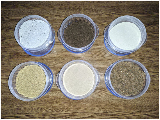 Six types of pollutants with different physical characteristics have been considered for the experiments. The pollutants are representative of real contamination on the reflectors on different conditions and real installations. The pollutants are shown in Figure 3. The pollutants are the following: