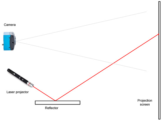 The procedure for the measurement of the influence of the pollutants in the visible spectrum is shown in Figure 5. The laser projector was focused on a certain part of the glass panel. The reflection of the laser on a projection screen was observed by the camera. Given the field of view of the camera, the laser could be focused on different areas of the panel, contaminated or clean, to determine the degree to which they reflect light. The distance between the panel and the projection screen was approximately equal to the distance in a real solar thermal panel between the reflector and the absorber pipe where the heat accumulated to be later transformed into electrical energy.