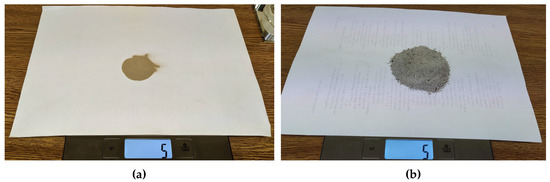 Weighing of the pollutants. (a) Fine sand, (b) ash. In both cases, the pollutant weighs 5 g.