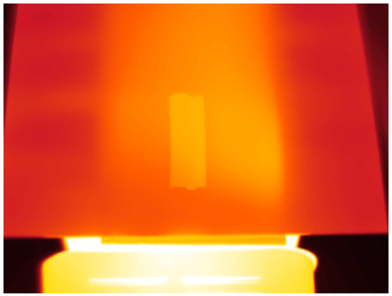 The infrared camera used in the experiments is a Flir T450sc. The camera has an 18mm lens and a sensor resolution of 320 × 240 resolution. The temperature range is configurable within several available ranges. In the experiments, the range [−20, 120 C] was selected. The manufacturer reports a measurement precision of ±1 K and a sensitivity of less than 30 mK at 30 C. The longwave infrared camera operates at a wavelength between 7.5 and 13 . The type of detector used in the camera is an uncooled microbolometer. Full technical specifications are shown in Table 2.