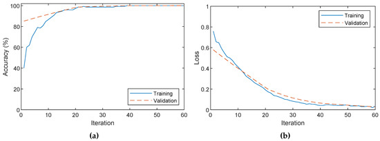 Result of the training of the deep neural model. (a) Accuracy, (b) loss.