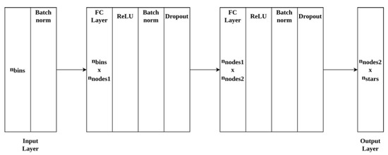 Figure 2 below. The network consists of an input layer depending on the number of bins followed by two fully connected layers and an output layer. Readers are encouraged to refer to the work [