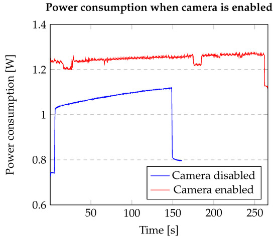 Figure 9 shows that the power consumption when the camera is enabled would be much higher and in this case, the camera has not been used.
