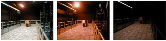 In terms of lighting, the facility provides control over a wide range of situations from simulation of daylight to moonlight (Figure 5). Video recordings can be made simultaneously from various angles (typically with 8 or more cameras). Note, however, that these cameras are not synchronized nor calibrated.