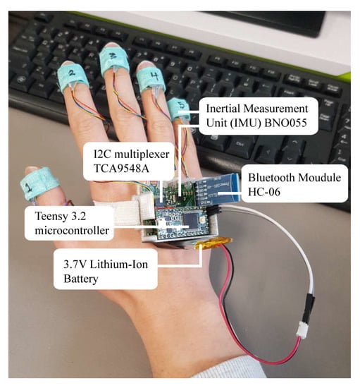 - Preetham, C.; Ramakrishnan, G.; Kumar, S.; Tamse, A.; Krishnapura, N. Hand talk-implementation of a gesture recognizing glove. In Proceedings of the 2013 Texas Instruments India Educators’ Conference (TIIEC), Bangalore, India, 4–6 April 2013; pp. 328–331. [Google Scholar]