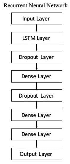The RNN model is subjected to compilation using an adaptive moment estimation (Adam) algorithm as a gradient descent-based optimizer with a learning rate of 0.001 and decay rate of (the first and second moment exponential decay rates are defined as 0.9 and 0.99, respectively). Two validation models are applied, hold-out and k-fold cross validation, to gauge the generalizability of the network during the model training process, to validate the learning performance, and to tune the hyperparameters of the network. The dataset is partitioned into 70%, 20%, and 10% for training, validation, and testing datasets, respectively, for the hold-out model, whereas 10-fold cross validation [39] is performed for the k-fold model.
