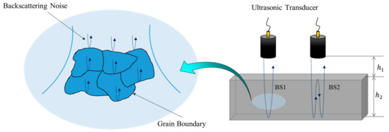 Among the attenuation factors, scattering occurs because the composition of the material is not completely uniform. Scattering occurs due to the presence of interfaces with different acoustic impedance values (such as inclusions and pores) or due to the grain boundaries within the material. In heterogeneous materials with very different densities and modulus, scattering occurs as ultrasonic waves pass through the material due to the difference in acoustic impedance of each particle in the material. Even with a single-crystal structure, when the crystalline parts of the material are anisotropic, the random directionality of each grain in the material causes scattering (as in other materials composed of crystals). In particular, with the ultrasonic inspection of structures made of anisotropic media, such as DMWs, there are many difficulties in detecting internal defects, because backscattering noise caused by internal grain boundaries is relatively higher than that of isotropic media. Figure 1 illustrates these characteristics of a transmitted ultrasonic beam.