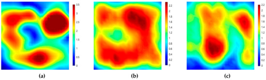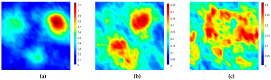 Ultrasonic attenuation map from the (a) top, (b) front, and (c) side scanning of a weld-metal specimen using attenuation coefficient values and the ultrasonic pulse-echo method.