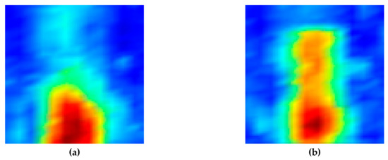 Ultrasonic images acquired by scanning the front plane of the dissimilar-metal-welded (DMW) specimen using (a) the first back-surface echo and (b) second back-surface echo through the ultrasonic pulse-echo method.