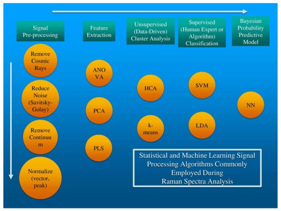 - Gautam, R.; Vanga, S.; Ariese, F.; Umapathy, S. Review of multidimensional data processing approaches for Raman and infrared spectroscopy. EPJ Tech. Instrum. 2015, 2, 1–38. [Google Scholar] [CrossRef]