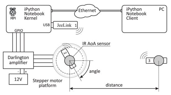 When it comes to the already available sensors that provide AoA measurements, we can outline devices used in the Cricket Compass System [] working with ultrasound signals, different antenna array systems [], and rotating laser systems []. Furthermore, a PSD (Position Sensitive Device) sensor has been successfully utilized for indoor positioning using AoA techniques, with the obtained localization error below 1 cm []. QADA (Quadrant Photodiode Angular Diversity Aperture) sensor also showed to be a part of the promising angle-based localization apparatus, as it was used in an IR indoor positioning system that provides the absolute error of 0.9° in the estimation of the polar angle, and 12 cm of absolute localization error [].