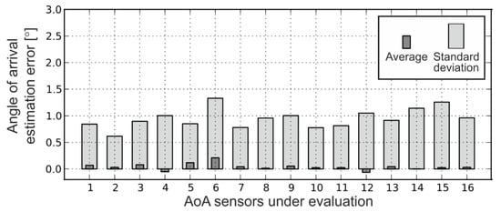 Angle of arrival estimation error for 16 different sensors.
