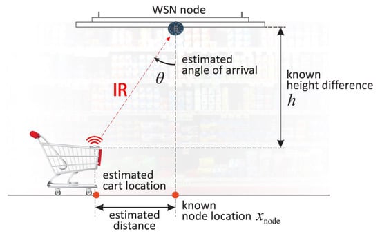 Although the proposed method can be utilized in many different applications, in this paper, we tackle the specific aisle-level cart navigation use case. The environment in this use case is characterized by many narrow corridors, high or moving obstacles, such as shelves or customers. Many current systems fall short in this kind of environment, specifically because of the unpredictable and changing signal propagation. In this context, our showcase system is using WSN nodes which are equipped with IR AoA sensors and distributed above the aisles. WSN measures a signal from the infrared transmitters installed on the carts and delivers those measurements to the localization server, thus enabling real-time cart localization. The key advantages of this system are inexpensive installation and maintenance, and competitive localization precision as demonstrated in conducted experiments.