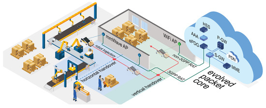 In addition, handovers can be classified based on the target performance. For example, a handover scheme allowing to switch the cell without a service interruption (minimized packet loss) is called “seamless” handover, while in “fast” handover the latency of packets is minimized. In the case of mmWave access, additional issues arise: due to high channel penetration loss, the zone where a handover may be performed without session interruption is usually very small [24]. This problem also appears in the case of LoS–non line-of-sight (NLoS) boundary crossing, where mmWave signal level drops significantly and rapidly, and the traditional RSSI-based handover schemes cannot react fast enough.