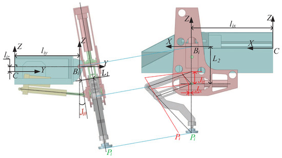 Due to the existing distance between the hypothetical base coordinate and the plane of the parallelogram mechanism of the leg, needs to be updated according to the actual robot structure, as shown in Equation (31):