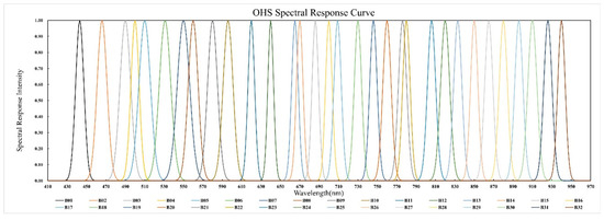 Spectral response functions of OHS hyperspectral bands.