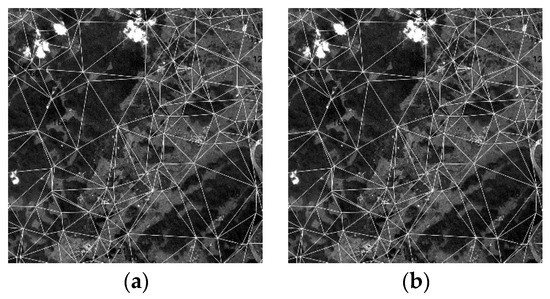 Delaunay triangulation. (a) Reference band (subset). (b) Band to be registered (subset).