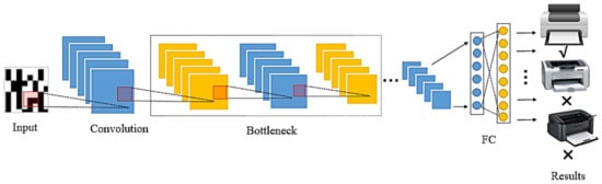 In the studies of printer source identification based on deep learning, scientists and researchers often directly introduce CNNs which are commonly used in the field of computer vision to classify printers. However, there are essential differences between the printer source identification and classification in computer vision. In the field of computer vision, the morphological differences between categories are larger, which can be distinguished by human eyes; but in the field of printer source identification, the morphological differences between categories are extremely small, and the differences between categories exist in a weak form [27]. At present, the commonly used CNNs in the field of printer source identification of digital documents are generally designed based on LeNet [28] or AlexNet [29], because compared with VGGNet [30], GoogLeNet [31], ResNet [32], and other CNNs with more layers, they have lower structural complexity, have better tentative conditions for forensic problems with fewer data sets, and are more suitable for small-size image input.