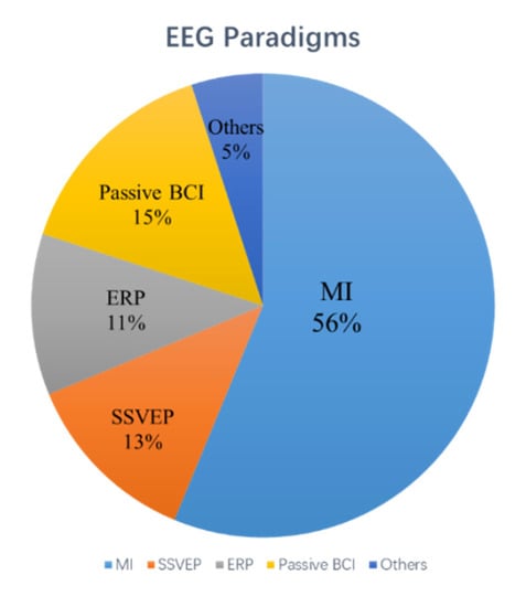 There are four paradigms of EEG-BCIs discussed in this paper and the percentage of these paradigms across collected studies are shown in Figure 3.