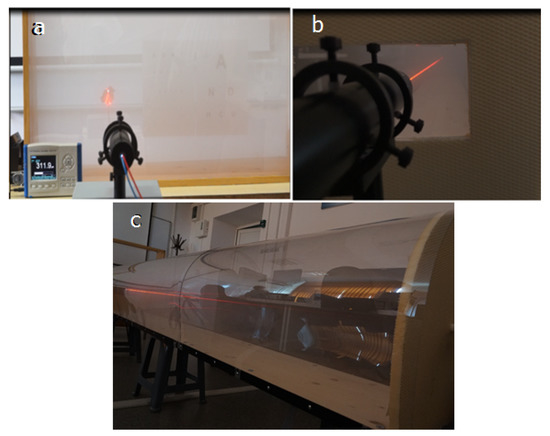 (b) Flexibility to test methods from both categories described above, visibility enhancement, and fog detection. Mandatory for both categories are the video cameras; the setup is equipped with cameras (Canon HF G10) inside the chamber, but also outside it, in order to monitor the entire process. The images acquired with the cameras are sent to a PC where they are processed. For the second category (fog detection), in the setup, there is an optical source (laser Lambda lll-2 HE-NE) and an optical receiver (Newport Power Meter Model 1918-c), which can be moved based on the method rhat you want to test (direct measurement or backscattering).