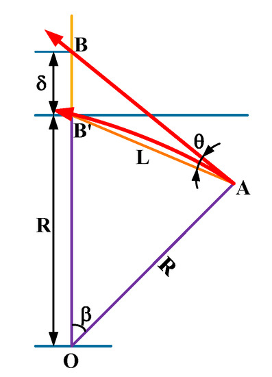 Next, Equation (3) is derived from the curvature of an arc, the curvature radius R of the actual trajectory AB′ of the optical path can be obtained as follows: