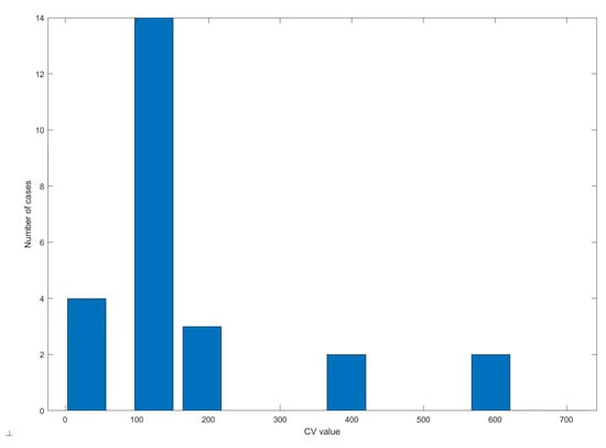 Histogram of coefficient of variation (CV) values.