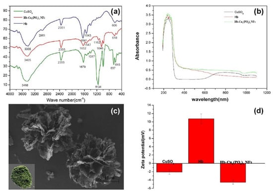 2.3. Synthesis of Hb–Cu3(PO4)2 NFs