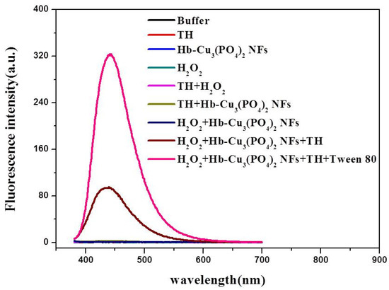 APA StyleZou, H., Zhang, Y., Zhang, C., Sheng, R., Zhang, X., & Qi, Y. (2020). Fluorometric Detection of Thiamine Based on Hemoglobin–Cu3(PO4)2 Nanoflowers (NFs) with Peroxidase Mimetic Activity. Sensors, 20(21), 6359. https://doi.org/10.3390/s20216359