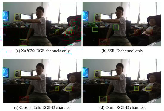 Besides, some RGB-D fusion related papers focus on other computer vision tasks such as 3D reconstruction [56], semantic segmentation [49], salient object detection (Salient object detection aims at modeling the attention mechanism of human visual systems, and it is very different from the normal object detection task) [50,51,53], and so on. These works are very different from ours and will not be discussed this paper.