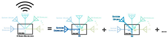 As an example, Figure 2 can be analyzed in depth, where in the middle schematic the user wants to receive data in the SATCOM downlink band, and thus the path is clear for the respective frequency band B1, and for all the other operating bands the impedance seen will be infinite. This concept is scalable for the n different bands of the antenna. In short, this concept allows to design a n-band structure as efficient as the summation of several resonant antennas in each of the n bands.