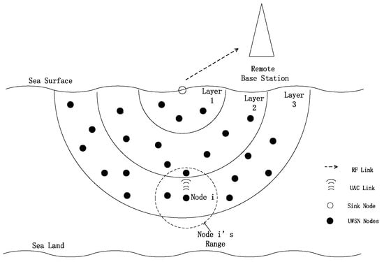 N is the set of deployed sensors. During the initialization of the underwater network, sensor nodes are layered as shown in