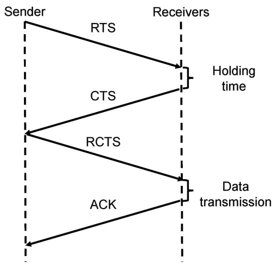 In order to achieve reliability of transmission, MAC protocols allow the sender and receiver to handshake by sending small control packets (e.g., request-to-send (RTS)/clear-to-send (CTS) [