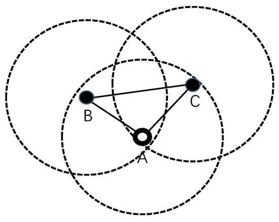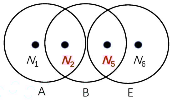 According to the forwarding set and the neighbor table T, a adjacency matrix E is constructed, where E is created to express the relationship connectivity between nodes in . Let be one of the vertices in adjacency matrix E, and binary express the neighbor relationship between vertex and vertex . The element is 1 when vertex and vertex are neighbors, and zero when they can not detect each other.