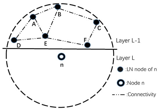 After network initialization, each node maintains a neighbor table T that contains the information of its neighbors. The neighbor table includes neighbor ID, neighbor layer number and two-hop neighbor information. Each node classifies its first-hop neighbors to lower-layer neighbors (LN) and higher-layer neighbors (HN) according to the layer number. The LN of n expresses the neighbor whose layer number is lower than node n, and HN expresses the opposite.