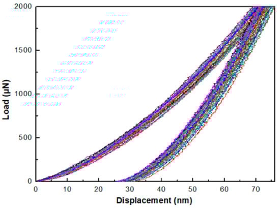 Load-unload curves of sample D1 under 2000 μN maximum loading force.